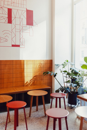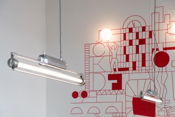 Art: wall mural designed by Lumír Kajnar based on original works of Václav Dlouhý (graphic designer of ČKD in 60th - 80th of 20th century) / drawn by students of Academy of Fine Arts in Prague